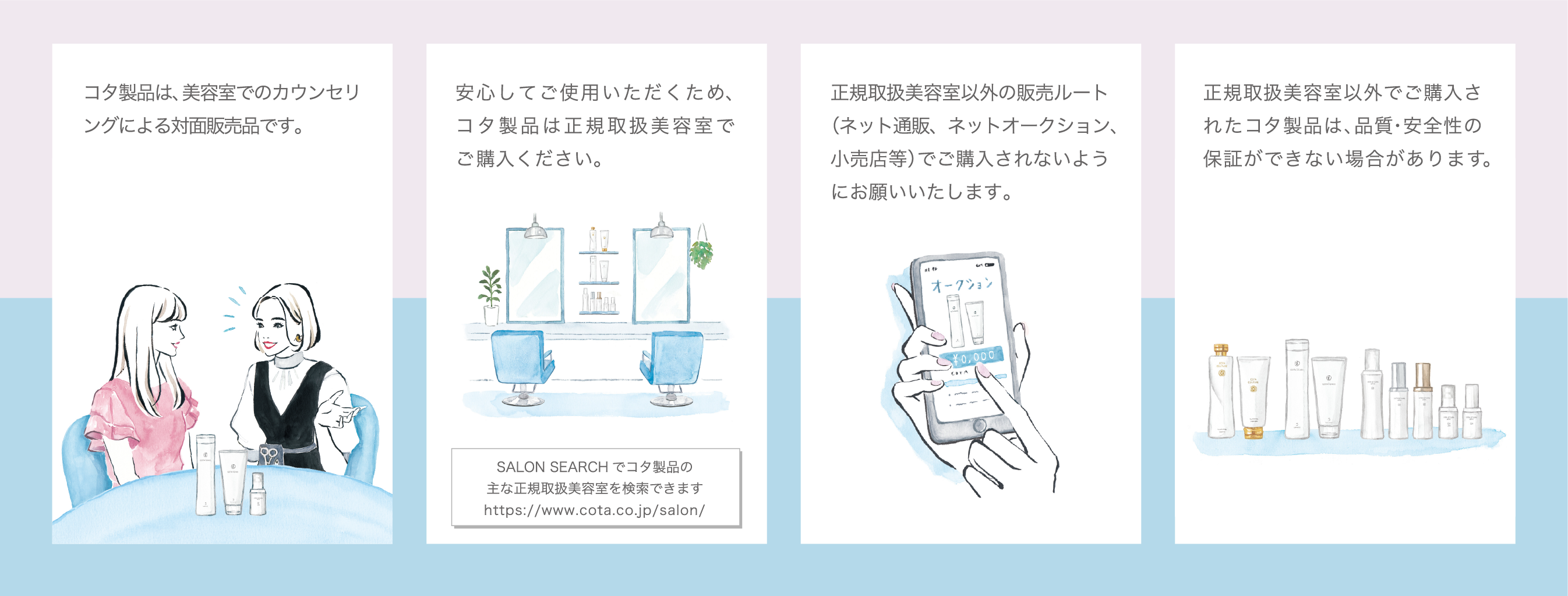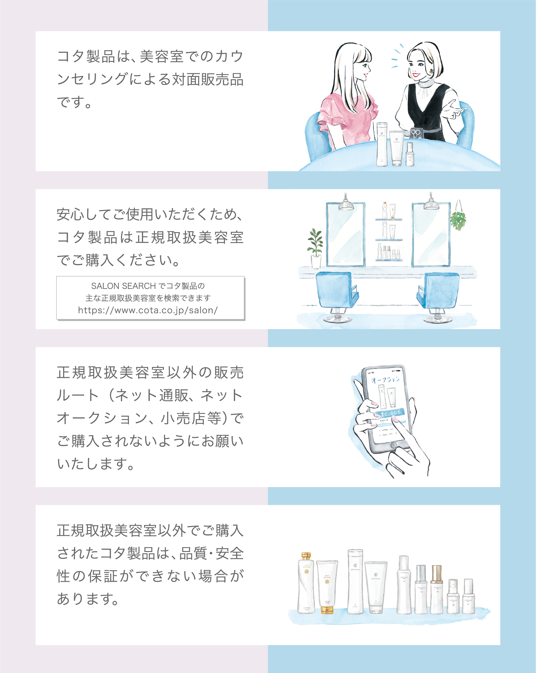 あなたに合ったヘアケアを行うために、 コタ製品は正規取扱美容室でご購入を。
