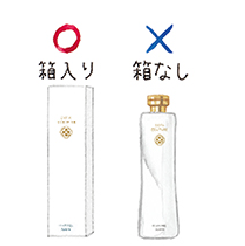 当社では、製品をお客様に安心してお使いいただくために、工場内で製品ごとに化粧箱もしくは特別なシュリンク包装を行っています。そのため、「化粧箱に入っていない」または「包装がされていない」場合は、ご購入をお控えください。